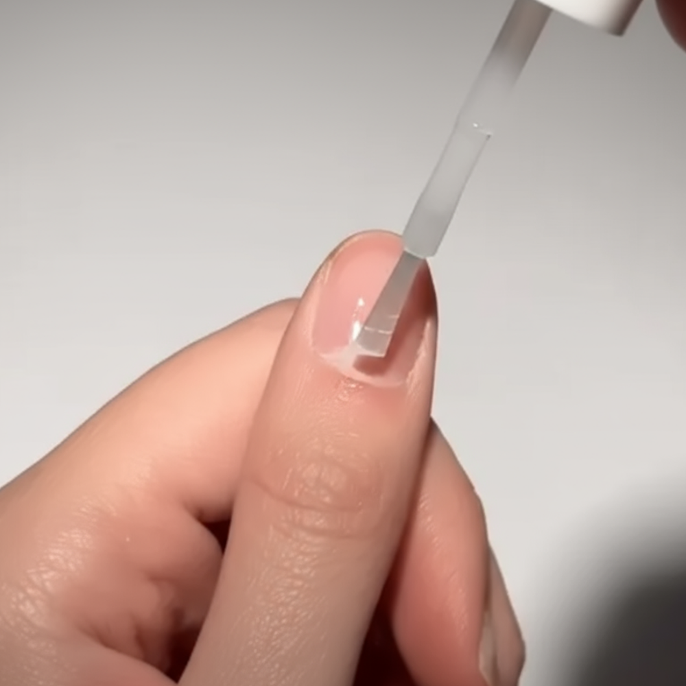 After PREP, Apply a thin, even layer of nail glue to your natural nail and the back of the press-on. Avoid excess, a little goes a long way.
